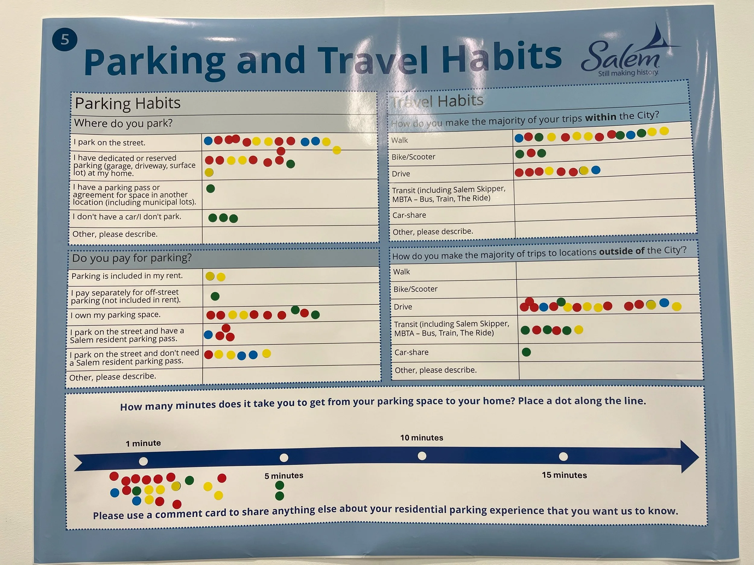 An Open House held on Tuesday, December 17, 2024 shared the preliminary findings of the City’s current parking analysis, studying the utilization of off-street parking at multifamily housing developments in the City, and asked attendees to offer their thoughts on the findings and share about their parking and travel habits. Meeting materials were provided in English and Spanish. Materials included cycling presentation slides and boards for engagement.